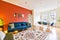 The flat feels spacious and also private with each bedroom on either side of the living room.