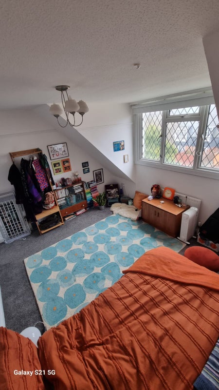 💫 Room - huge double room, big window, top floor (4 flights of stairs) next to a bathroom with a bath.