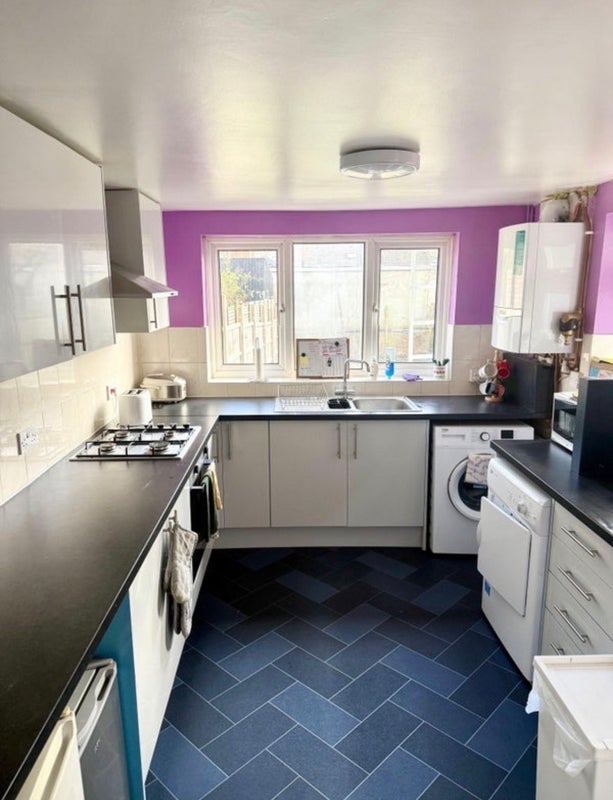 We have a big kitchen, dining room and sitting room to share. The house feels spacious with lots of communal areas. It’s a 3 storey Victorian house in a nice street.