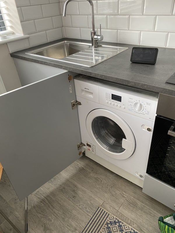 A fully equipped kitchen / diner, including a Smeg washer dryer, fridge freezer, microwave, convection hob and electric oven.