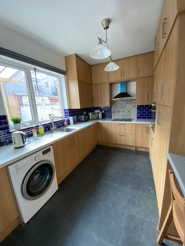 Fully equipped big kitchen with washing machine and tumble dryer.