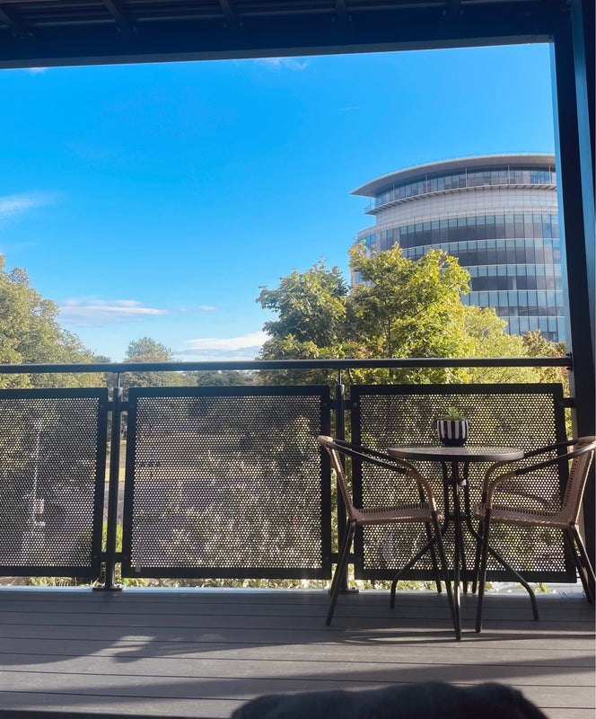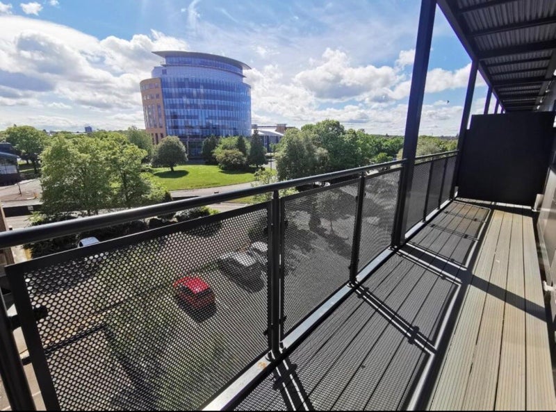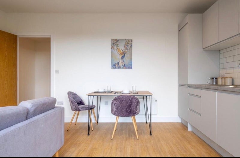 The apartment is part of a recently built development with a clean, modern feel throughout. There’s an open-plan kitchen and living area and a large south-facing balcony, which lets in lots of natural light.