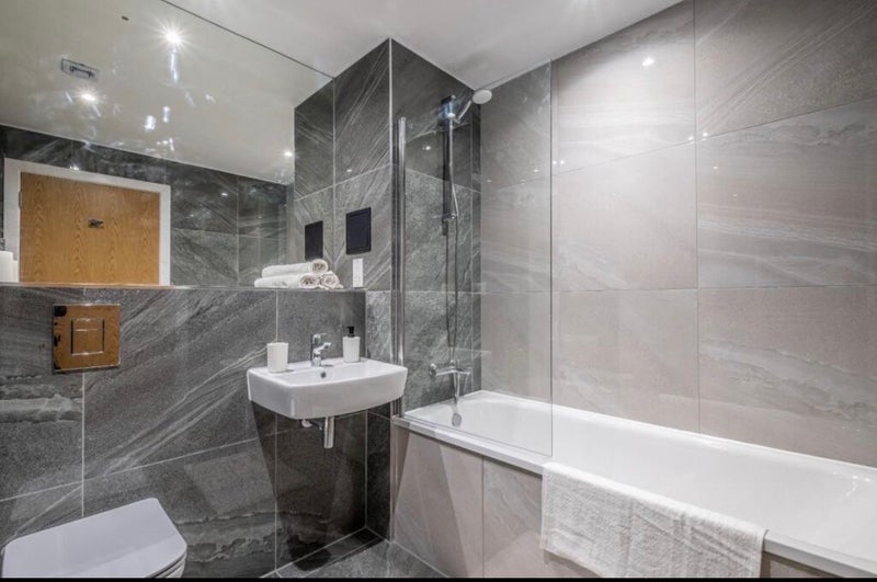 You’ll have your own private bathroom with a bath and shower combo, finished to a modern standard.