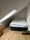 The room is an attic, up two flights of stairs. There is a shared living room, kitchen, and two bathrooms.