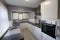 Modern kitchen with washer, fridge freezer, cupboards & dining space