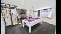 We have a double room available in a large 6 bedroom house. There is a large dining room, lounge (with large screen tv & access to Netflix) & a pool room for gaming.