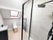 A well-presented room on the first floor, furnished with a bed and mattress, wardrobe, desk, and flat-screen TV. LED lighting is fitted behind the bed. The room has access to a private off-suite bathroom for exclusive use, comprising a shower, toilet, vanity unit, and mirror, finished to a modern standard.