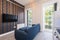 Apartment two showers and toilets, Kitchen/Lounge/Diner: Large area for socialising, eating, and lounging with a generous TV. An impressive fully fitted kitchen. Fully integrated, modern units comprising of fridge/freezer, electric hob, electric oven, worktop space, extractor fan and lots of space.