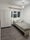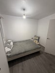 Furnished room with cupboard, office desk, office chair, fan, bed and mattress