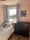 The single room is bright and airy, facing south and looking out onto fields. There’s a large walk in closet, desk and unit.