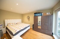 - A double bedroom (actually a king-size!) with a desk, chair, wardrobe, laundry drying rack and whiteboard