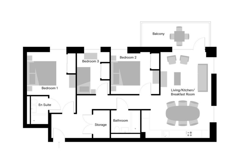 The room is a double en-suite. The apartment is spacious, with lots of storage and state of the art interior design. The kitchen is also equipped with an oven, microwave, stove/hob, dishwasher, fridge/freezer and washing machine.