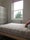 The room is garden facing, filled with light and have a feature fireplace, wooden floors, double bed, wardrobe and desk.