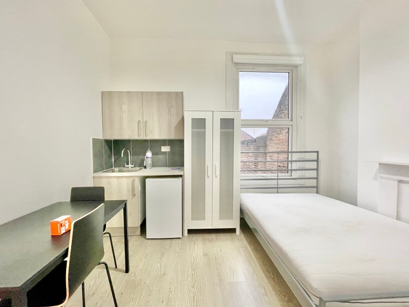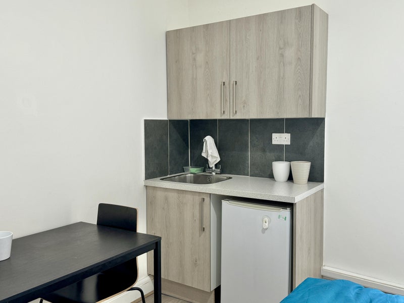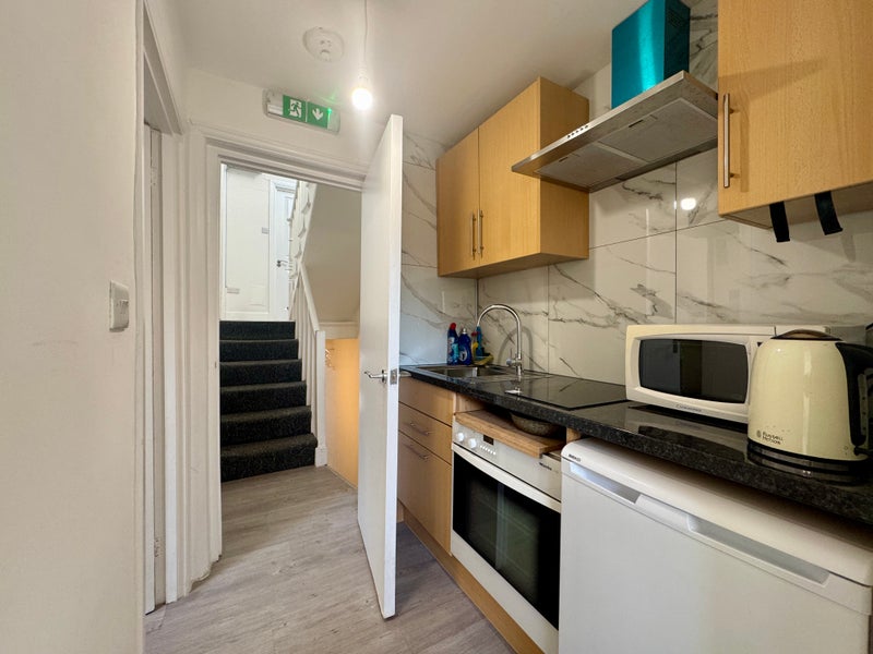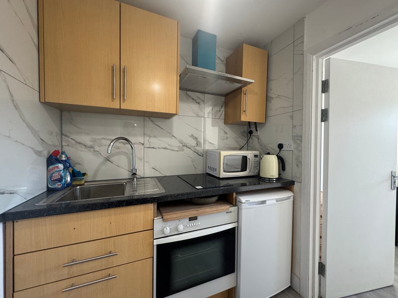 Newly refurbished studio flat in Finchley Central. The property comprises bedroom and kitchenette, bathroom.
