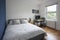 The room comes fully furnished (bed, wardrobe, chest of drawers) and overlooks a quiet garden — perfect for a calm and comfortable home environment.