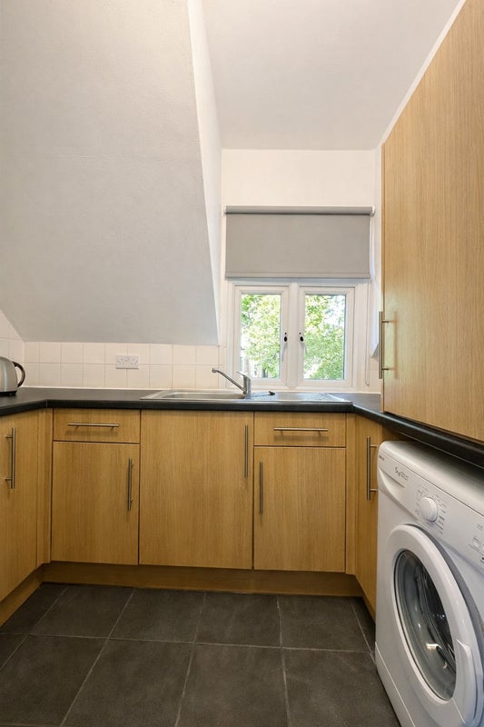 The flat is situated within a quiet, well-maintained building of self-contained studios, offering a comfortable and respectful living environment.