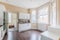 We have a large kitchen, small shared living room and a shared bathroom.
