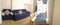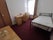 The room is on the first floor and has a garden view (side). It comes with a single bed (very good mattress), a wardrobe, a desk, a chair, a shelving unit and a mirror.