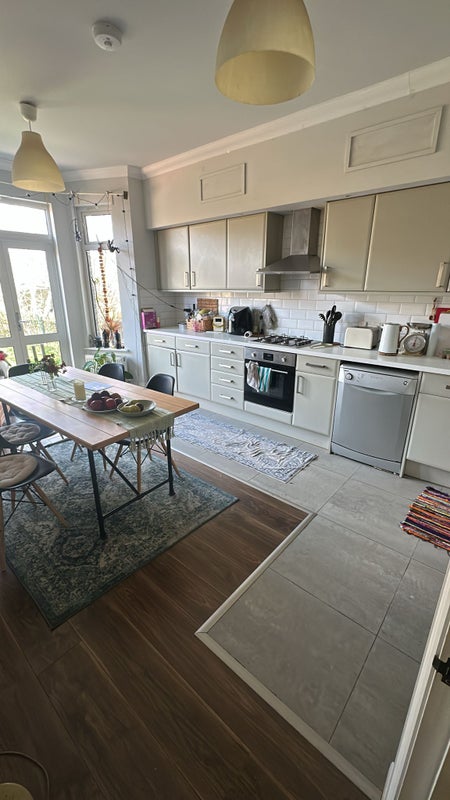 We have a lovely big kitchen which we share as a communal space, an office, a garden and two shared bathrooms. Easy access to central london with a tube a 10 minute walk.