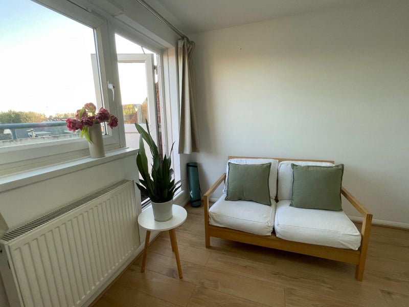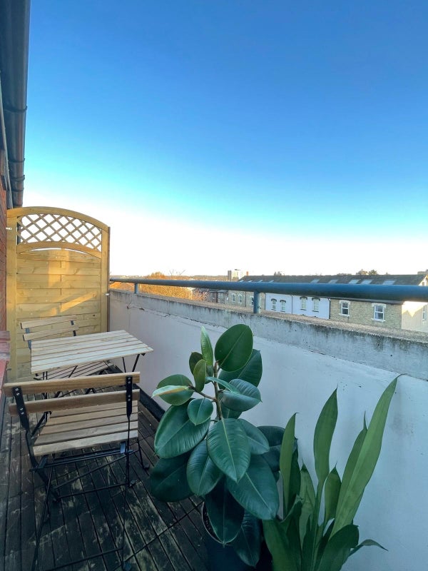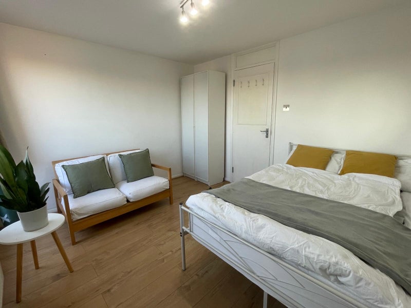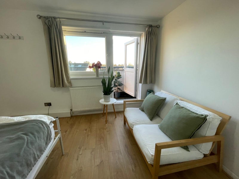 Double room in a bright spacious duplex flat, with a walk-in wardrobe for extra storage and a beautiful balcony.