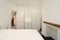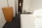 Fully furnished room with bed, wardrobe, and chest of drawers