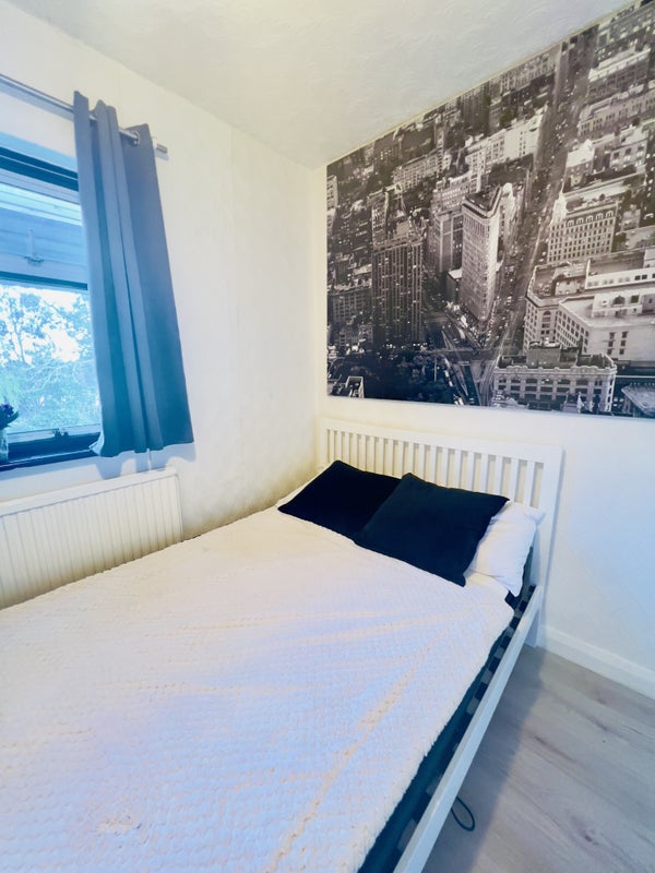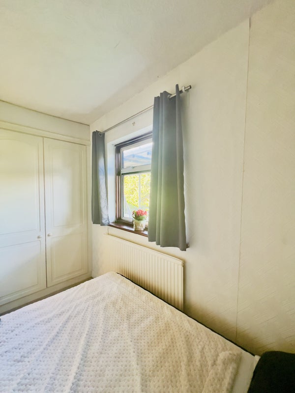 Room with brand new mattress, duvet and pillows. A lot of storage deep wardrobe and a lot of drawers. Window to the back of the house and Big size heater.