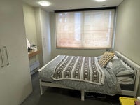 It’s a furnished room with 3 built-in wardrobes, a bedside table and bed with mattress, plus additional storage just outside the room.
