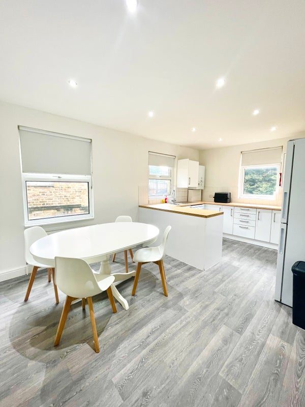 The flat has 2 bathrooms and a large kitchen with dining in area..