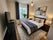 Room 1: Large king-size room with desk, chair, bedside drawers, built-in wardrobes and 65-inch TV.