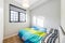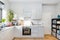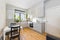 Large kitchen with small lounge / dining area, large bedroom and bathroom