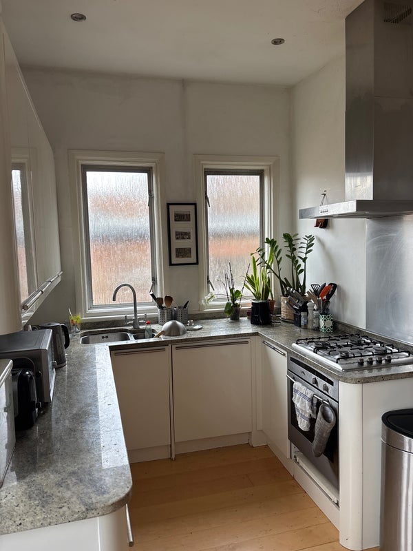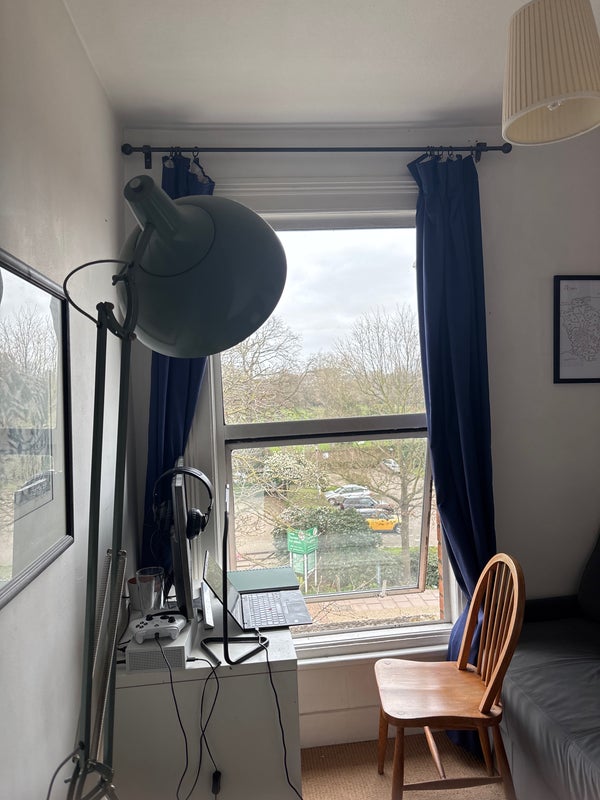 The room is a box room, but has ample storage space for clothes. As a bonus, you get access to our office, which has a sofa and a desk in for remote work.