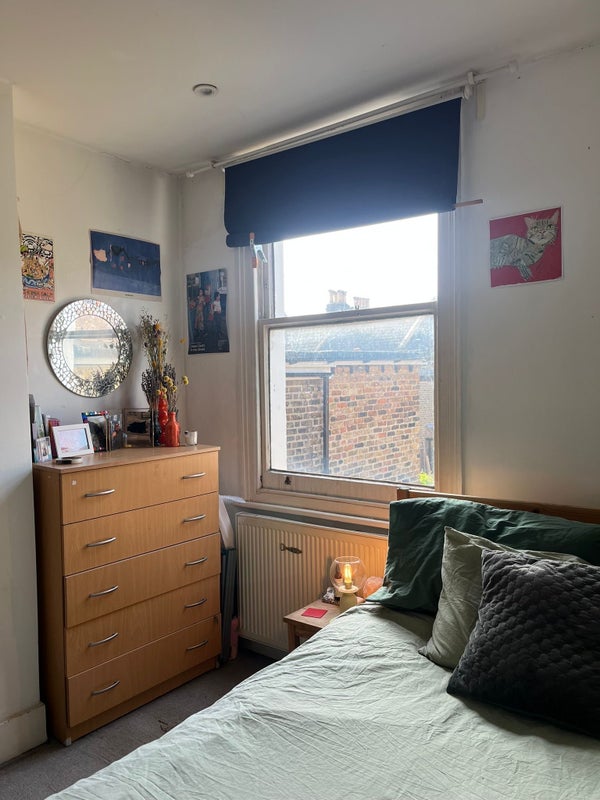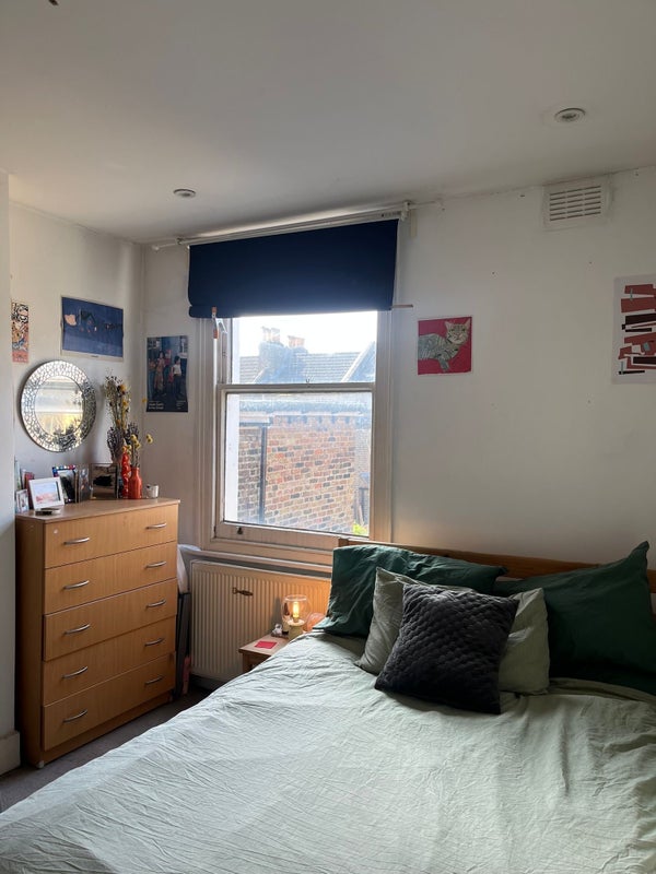 The room is a furnished double on the first floor at the back of the house, so it’s quiet and filled with natural light. You’ll share a bathroom with just one other person.