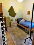 Upstairs room, shared bathroom with bath and shower, shared kitchen and fridge, electric cooker. Shared front room with sofa and dining table. No TV licence but you can purchase if you want to watch TV, street parking, big garden with patio. 2 chihuahuas and a cat in house. Friendly neighbourhood and quiet cul-de-sac. Local shops 5 mins walk. Buses 2-5 mins walk.
