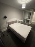 Room is fully furnished: Double bed&mattress, bedside lamp, good sized mirrored wardrobe, and a study desk and chair.
