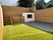 A private, landscaped garden with a large patio area, ideal for outdoor dining or relaxation.