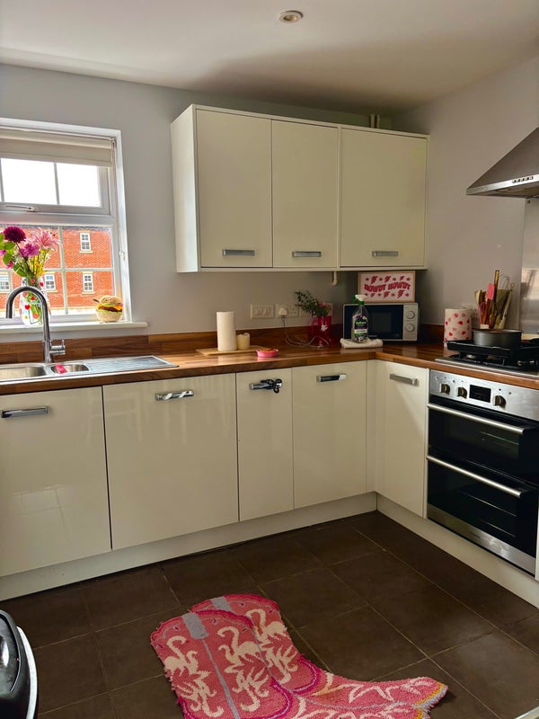 Good sized spare room available in a clean and quiet flat. The room is bright with a large window that lets in plenty of natural light and looks out onto green space, which makes it feel really peaceful. It has neutral décor with grey carpet, so it’s easy to make it feel like your own space.