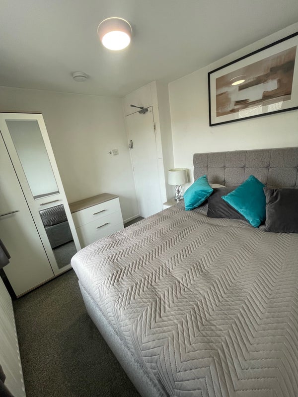 A well-kept double room available in a clean and tidy house on a quiet street just off the main road in Corby.