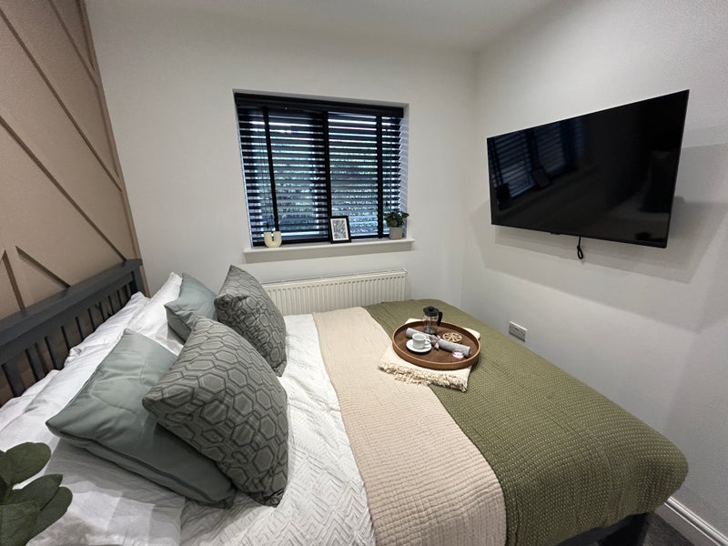 Enjoy the privacy of your own En-Suite Bathroom with walk in shower, luxury tiles and high end fixtures and fittings. You also have access to the shared Kitchen facility, which includes a washing machine/dryer and plenty of worktop space to prepare meals and another Smart TV.