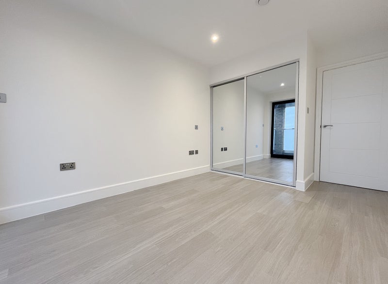 - Generously sized double bedroom with neutral décor and built-in mirrored wardrobes to maximize space and light.