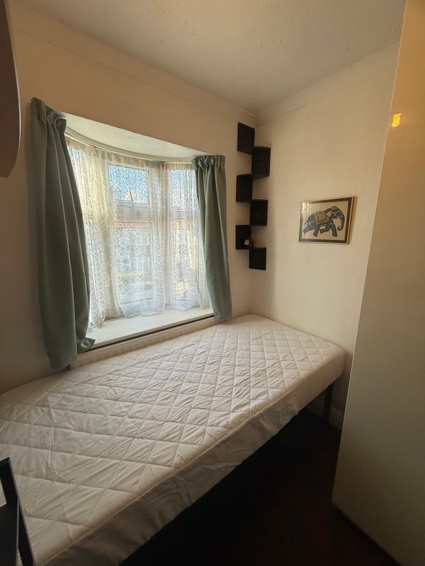 Bright, cosy single room, refurbished, in a clean house with a garden. Big wardrobe and storage space in the room, new oak floor, 2 modern bathrooms, shared kitchen and living room. Close to Northolt station central line and buses. Free on street parking.