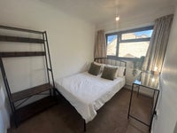 Fully furnished, double bed, open wardrobe, desk & chair.