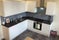 Modern fully equipped smart kitchen, Appliances include an electric hob, oven, cooker hood, toaster kettle, washing machine and dryer, Fridge all cutlery. Laminate floor and tiled kitchen floor.