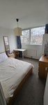 A (queen or double) bed room, comes furnished with a tall cupboard, large 3 drawer, small 2 drawer bedside table, desk and a chair with 2 mirrors. Large windows. In a spacious split level 3 bedroom apartment with 1.5 bathroom, and shared kitchen, living room and storage room. Closest station is Ladbroke Grove( Hammersmith & City) with a 5 min walk and Holland Park(Central) is a 10 min walk. Portobello Market is a 3 mins walk away, its nearby but still far enough that its quiet and residential.