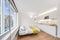 The flat is in the 3rd floor of a four-storey building, with a lift. Fully Furnished 200 square feet the beds comfortable has a double bed, wardrobe, dining table, and the kitchen self contained .Fitted kitchen with fridge/freezer, microwave, 2 ringed hob, washing machine. The universal areas are newly refurbished The studio has two large, double-glazed windows which makes the room very bright and looks out onto a quiet road. Quiet neighbours. There is a spacious bathtub. The flat is warm in winter and cool in summer. You will not be disappointed. A long-term tenancy is sought of a minimum 1 year available Viewings possible