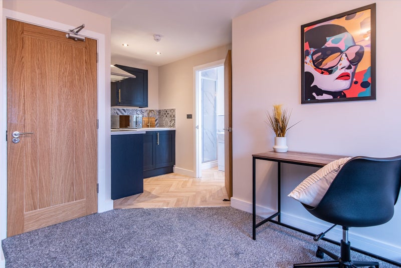 • Fully fitted Communal Kitchen including microwave, toaster, kettle and large fridge freezer, washing machine, tumble dryer.