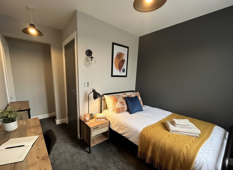 🏡 A modern, fully furnished En-suite double room finished to a high standard throughout. Stylish and well laid out, with a contemporary living and sleeping space and quality furnishings, creating a comfortable and private environment ideal for independent living.