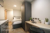 Located in the heart of Nottingham’s vibrant Lace Market area the property features a bright and well-designed open-plan living and sleeping space, providing a versatile layout that maximises the available space. The studio benefits from large windows allowing plenty of natural light, creating a welcoming and airy environment.