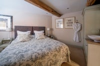 Located in the heart of a rural village one mile from the A1, Arthur's Stable is an attractive ground floor flat situated opposite the Landlord's own dwelling, therefore it is . It is decorated and fitted out in stylish luxury (as a former 5* B&B suite). It has a washbasin, walk in shower, separate loo, microwave and mini fridge, kettle and glassware cutlery and china. Books, TV and huge leather sofa. Outdoor seating on garden patio.