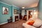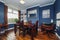 Dining room/home office with built-ins and statement mirror