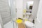 1 large bathroom with bath and overhead shower sink and toilet